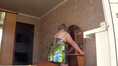 Mamma curvy con tette grandi prova nuovi reggiseni e cambia slip davanti allo specchio mentre la telecamera cattura le sue curve che rimbalzano.